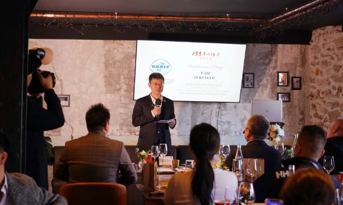 法国中国工商会秘书长、中国贸促会驻法国代表处副总代表李文国致辞(图片来源:PZ